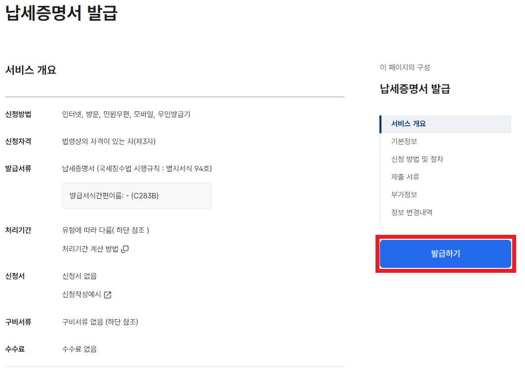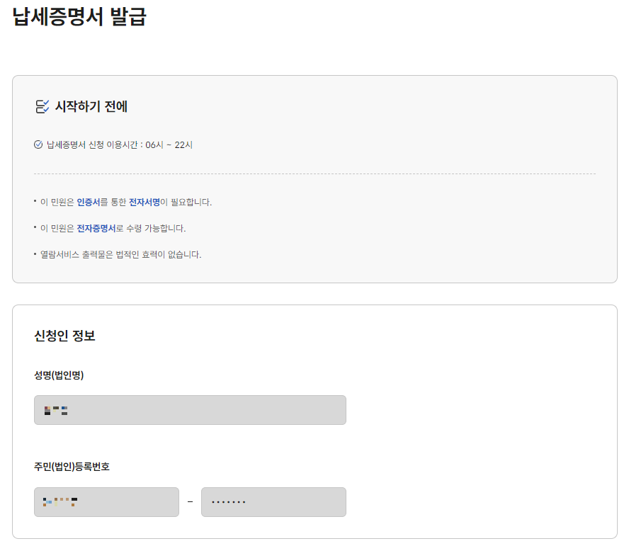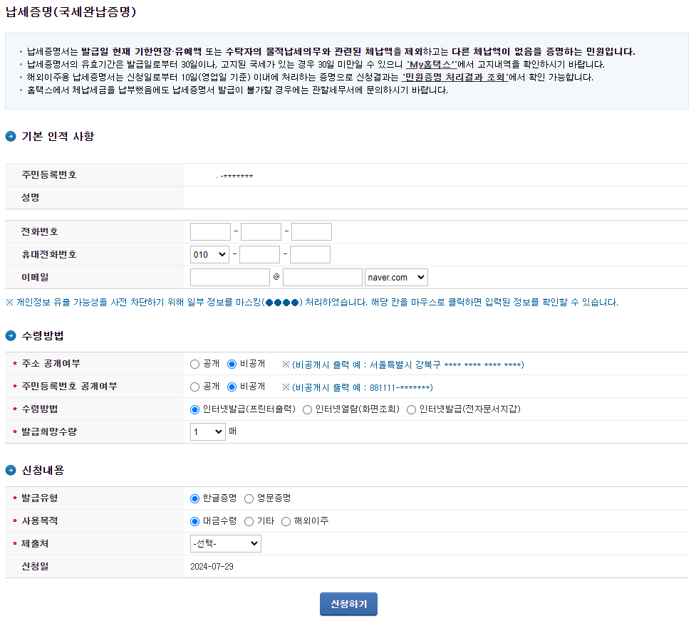 국세완납증명서 발급 주의사항