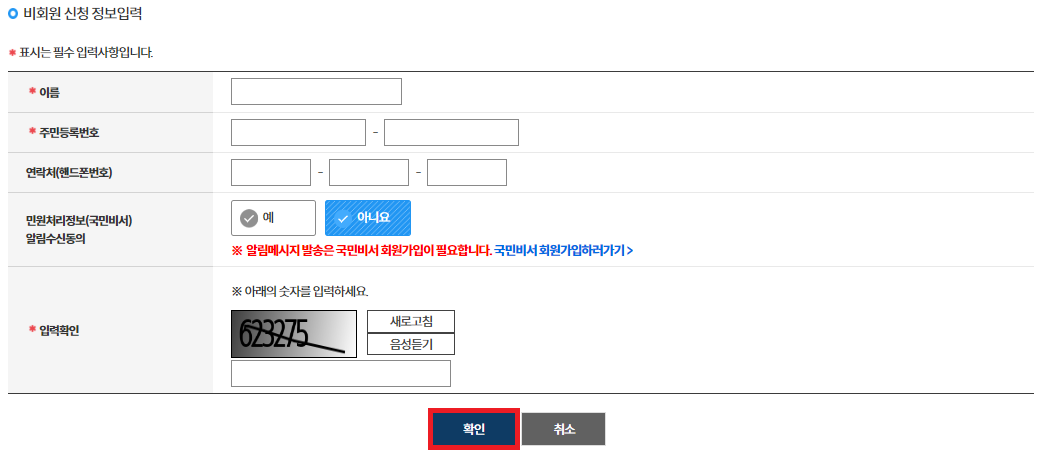 2. 회원/비회원 선택: 편한걸로 회원 신청하기/비회원 신청하기를 선택합니다.