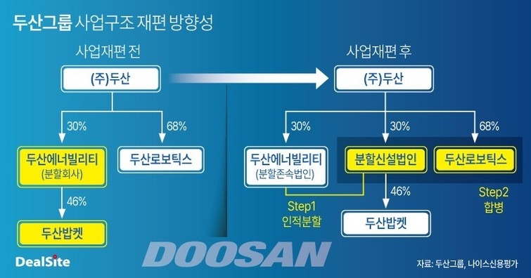 두산그룹은 두산밥캣을 두산로보틱스에 편입하는 지배구조 개편을 추진해왔습니다. 그러나 일반 주주들의 반대와 금융당국의 요구로 인해 주식 교환 계획은 철회되었으며, 분할 합병만 원래대로 추진하기로 했습니다. 이번 계획은 두산에너빌리티의 자회사인 두산밥캣을 두산로보틱스의 자회사로 만들기 위한 목적으로 진행되고 있습니다.