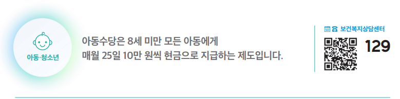지급대상은 만 8세 미만(0~95개월)의 아동으로, 아동이 만 8세 생일이 속하는 달까지 지원됩니다.