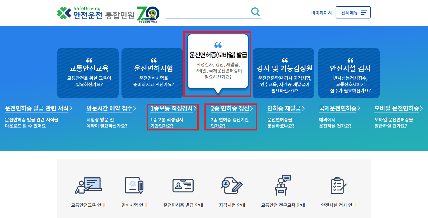 - 도로교통공단 안전운전 통합민원 사이트 방문: 먼저 도로교통공단의 안전운전 통합민원 사이트에 접속합니다.