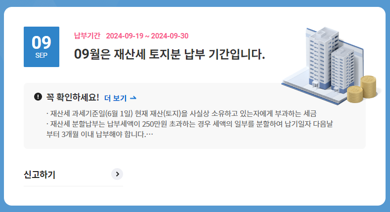 | 9월 16일 ~ 30일 | 주택 2기분, 토지 |