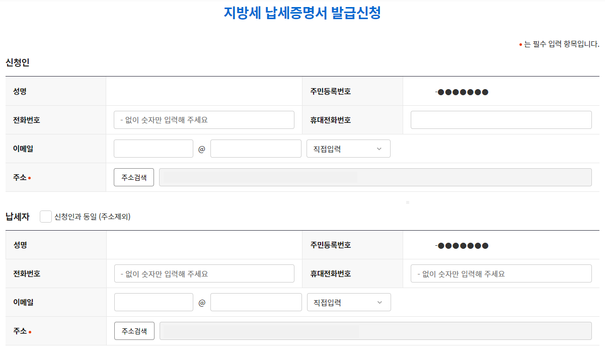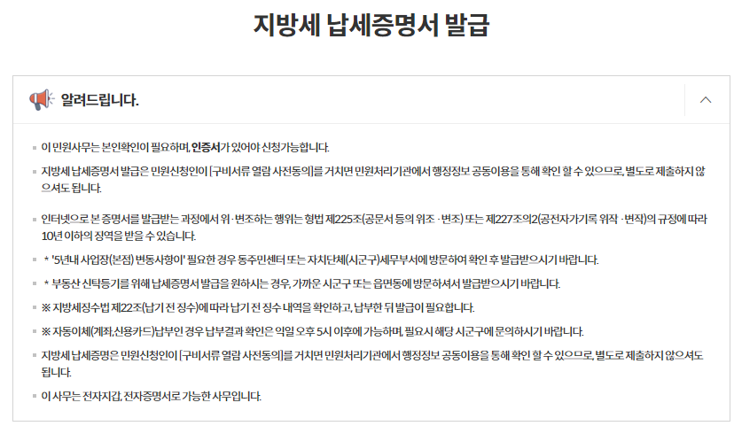 지방세완납증명서 발급 시 필요한 서류