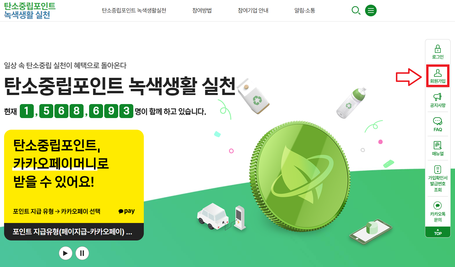 탄소중립실천포인트 가입은 간단하며 다음과 같은 절차로 진행됩니다.