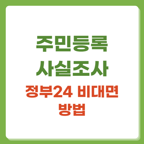 2024 주민등록 사실조사 정부24 비대면 방법 (+방문조사)에 대해 알아보았습니다. 2024년 주민등록 사실조사는 비대면 방식을 통해 더욱 편리하게 참여할 수 있습니다. 정부24를 이용하면 간단한 절차로 주민등록 정보를 갱신할 수 있으며, 방문조사와 중점 조사 대상에 포함된 세대의 경우 추가 확인 절차가 진행됩니다. 모든 국민이 이번 사실조사에 적극 참여하여, 실거주지와 주민등록 정보가 정확히 일치할 수 있도록 협조해주시기 바랍니다.