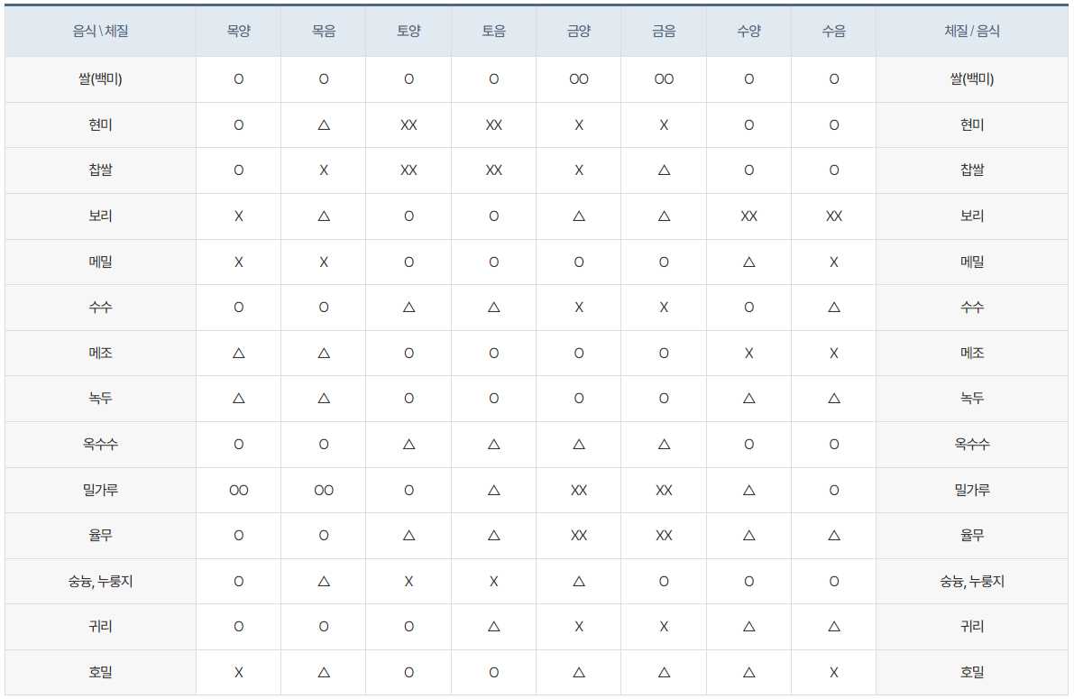 - 권장 음식: 소고기, 돼지고기, 뿌리채소, 마늘, 파