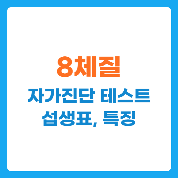 최근 건강에 대한 관심이 높아지면서 많은 사람들이 자신의 체질에 맞는 생활습관을 찾고자 합니다. 그중에서도 '8체질 자가진단 테스트 방법'은 한의학적 접근을 통해 자신의 체질을 파악하고 이에 맞는 식습관과 생활습관을 추천받는 방법으로 주목받고 있습니다. 이번 글에서는 8체질 자가진단 테스트 방법 (+섭생표, 특징)에 대해 자세히 알아보겠습니다.